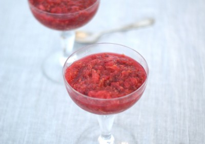 Compotée de pomme, banane et framboise.